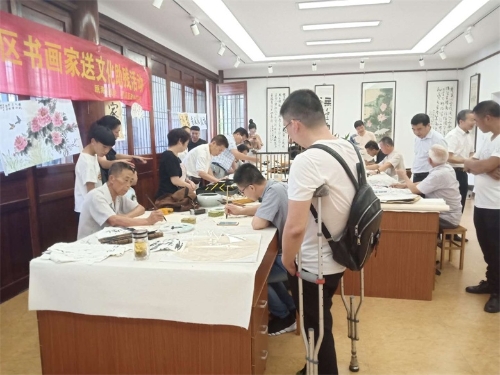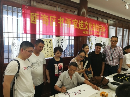 6月29日上午,瓯海区残疾人联合会联合瓯海区政协书画院开展书画家送文化助残活动。区残联理事长朱志胜、副理事长徐雪丽及来自全区各镇街的残疾人代表参加此次活动。